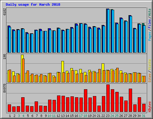 | Daily Statistics for March 2018 | ||||||||||||